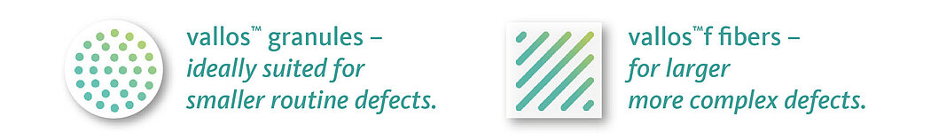 Verified vallos<sup>®</sup> granules and fibers are allogeneic bone grafts that have been demineralized to ensure high osteoinductive properties.1 A demineralized bone matrix has the advantage of turning over natural bone more rapidly but lacks the volume stability needed in a number of clinical situations.