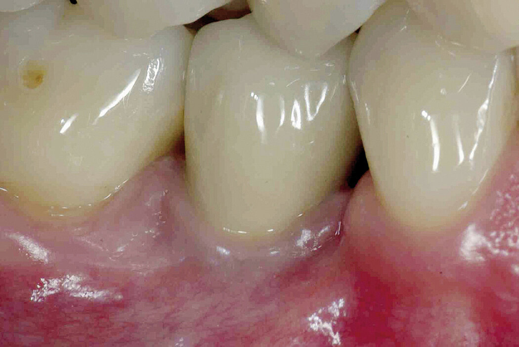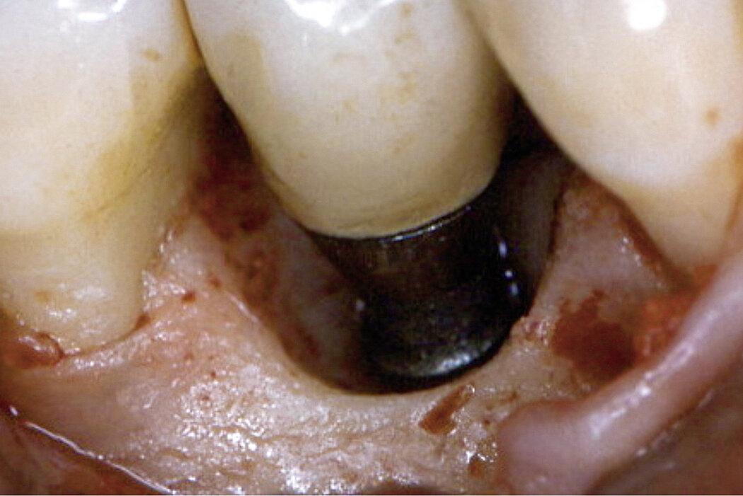 Defects caused by peri-implantitis can be corrected with Geistlich Bio-Oss® bone replacement material in combination with a Geistlich Bio-Gide® membrane.